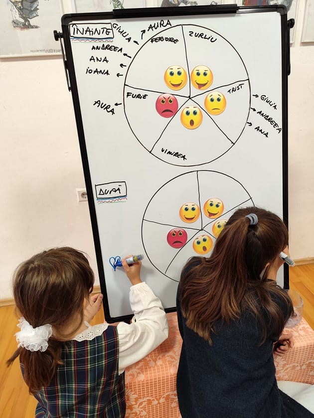 Dacă, înainte de activități, roata emoțiilor a identificat la copii atât fericirea cât și tristețea, sau chiar furia, pentru anumite momente din trecut, la final, definind emoțiile simțite pe timpul celor două ore petrecute la muzeu, cu toții și-au ales emoții de pe tablă. Toți s-au declarat „fericiți”, iar unii dintre ei, pe lângă asta, au spus și că sunt „uimiți” de cele descoperite în muzeu sau în sufletul lor, sau chiar „zurlii”, ultimii dintre ei devenind expansivi și împrăștiind în jurul lor fericirea pe care o simțeau.