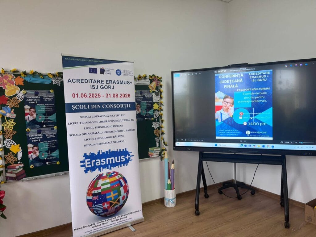 La finalul săptămânii, 26 septembrie 2025, s-a desfășurat la Slivilești o conferință județeană finală de diseminare a rezultatelor Acreditării Erasmus – ISJ Gorj. Intitulată „Pașaport non-formal – exemple de bune practici pentru activități non-formale”, manifestarea a constituit un prilej de reflecție, dialog și schimb de idei între profesorii implicați în activitățile și mobilitățile din anul III ale Acreditării Erasmus și cadrele didactice din școlile și liceele care vor derula proiectul în anul IV.