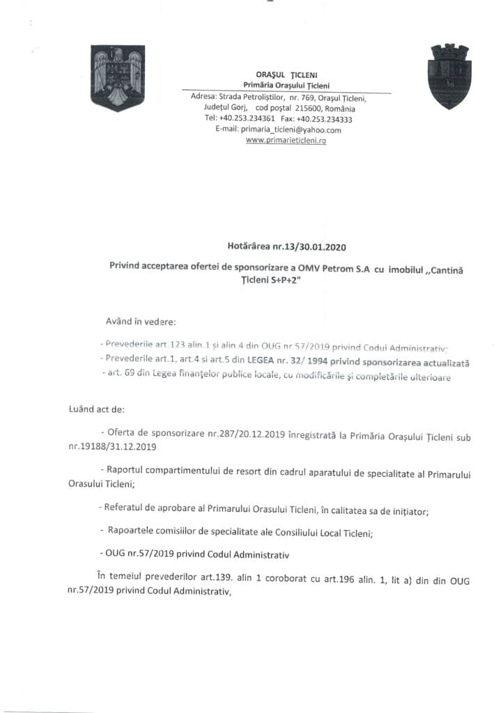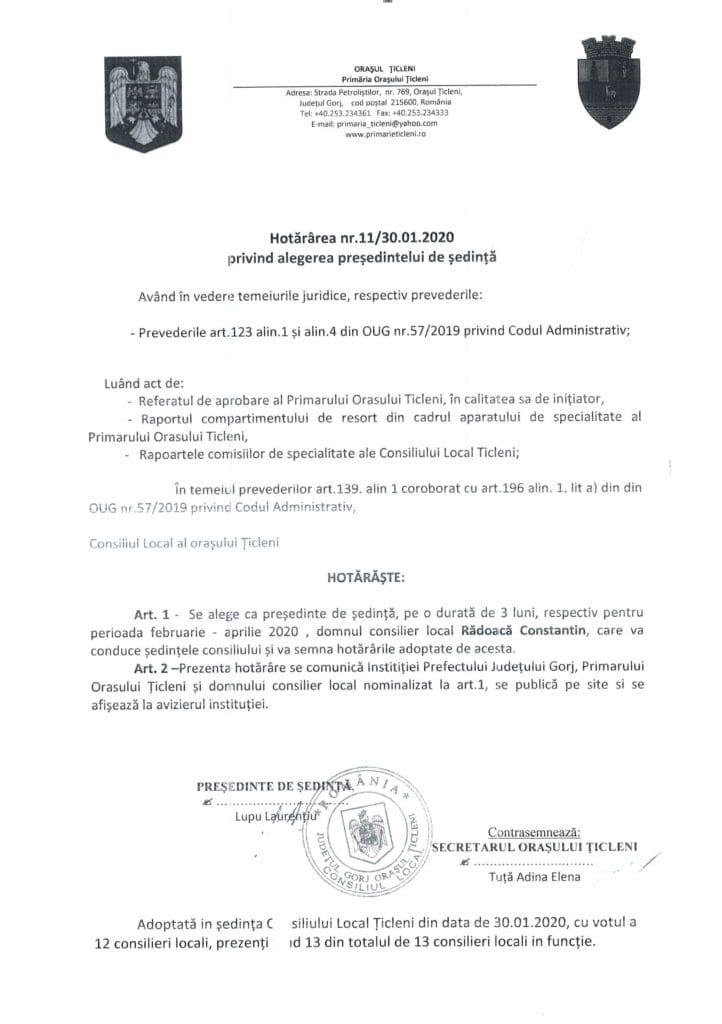 AdministrațieHotărâri de consiliu Țicleni- Gorj, ianuarie 2020 3 februarie 20213 februarie 2021 - by Vertical