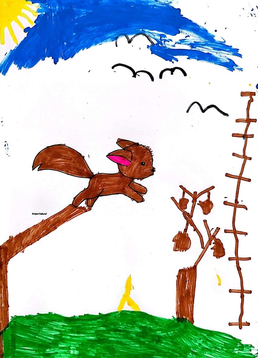 Stând pe o creangă, privea nucile din nucul de peste drum, care îi făceau cu ochiul. Nu a mai stat pe gănduri și a făcut un salt în nucul celălalt.