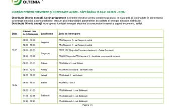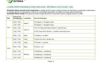 ANUNȚ! Unde se ia curentul în Gorj în săptămâna 13.10 – 19.10.2025 Read More